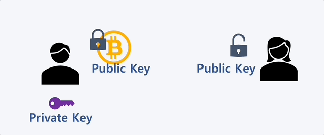 비트코인의 보유 및 송금에 대한 증명은 공개 키 암호화 방식과 디지털 서명이 사용 됩니다. 공개 키 암호화는 사용자마다 공개 키(Public Key)와 개인 키(Private Key)라는 한쌍의 키를 가지고 있습니다. 공개 키는 말 그대로 공개할 수 있으므로 누구에게나 이 공개 키를 공유하여 비트코인을 입금 받을 수 있습니다. 하지만 입금 받은 비트코인을 다시 사용하는 것은 공개 키와 한 쌍으로 제공된 본인만 알고 있는 개인 키를 통해서만 가능합니다. 개인 키로 비트코인 거래에 대해 생성한 디지털 서명은 개인 키를 모르더라도 공개 키만으로 그 소유를 입증할 수 있습니다.