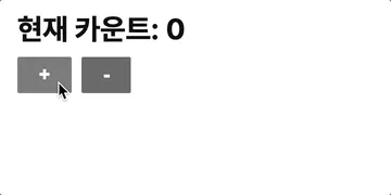 거기에 더해서 이번엔 버튼을 두개를 생성해 하나는 카운트를 1씩 증가시키는 +버튼, 하나는 카운트를 1씩 감소시키는 -버튼으로 기능을 추가해보도록 하죠.